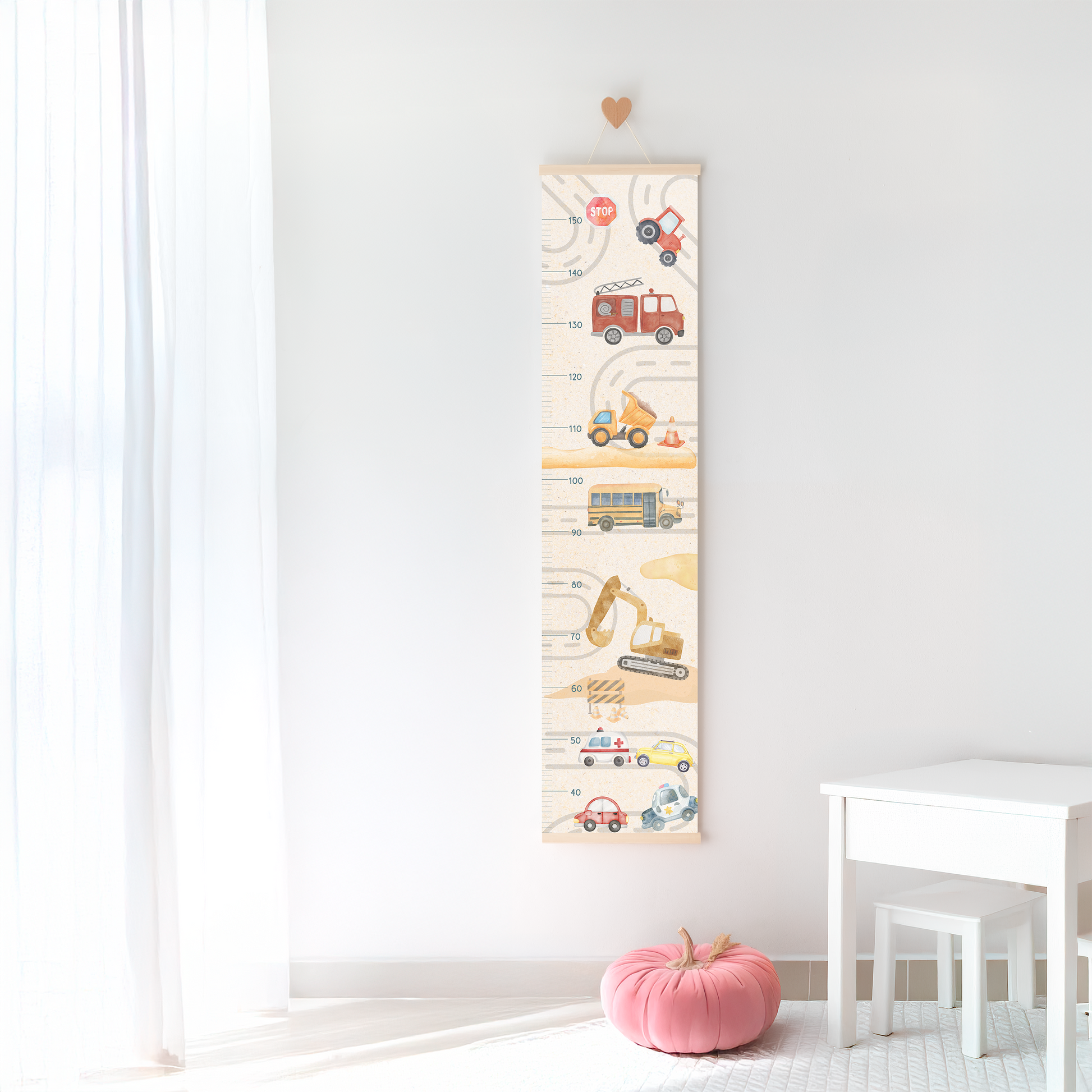 Set off on an exciting adventure with the On the Road to Growth kids’ growth chart! Featuring cars, trucks, and little road signs, this chart turns measuring your child’s height into a fun-filled journey through a world of wheels and imagination. Every centimetre is a milestone on their playful road trip of growth.